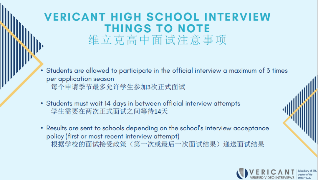 预面试(VPI)为学生提供了练习面试答案并适应Vericant正式面试结构的机会。
